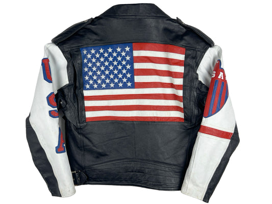 VTG MICHAEL HOBAN MOTORCYCLE AMERICAN FLAG JACKET